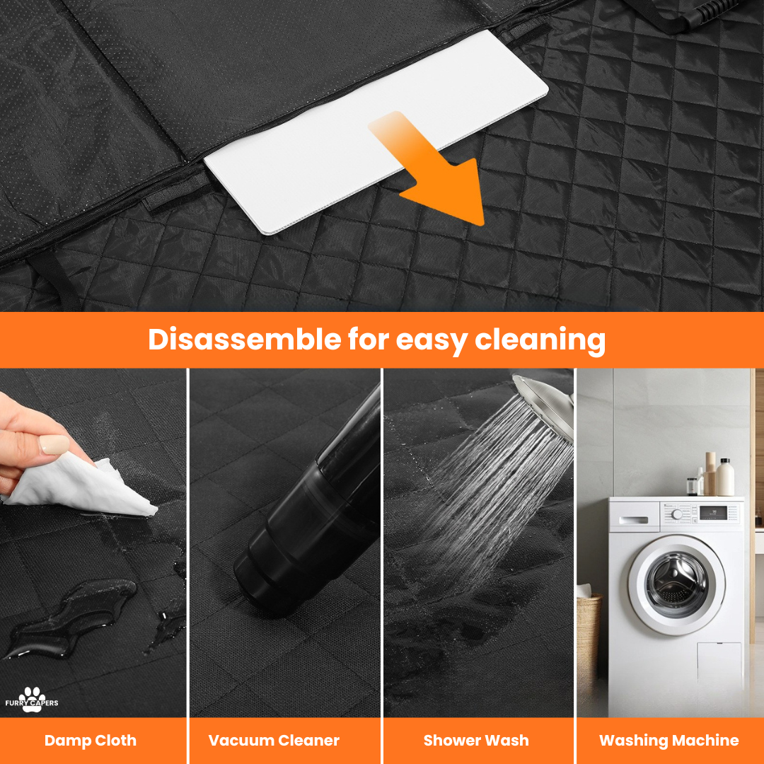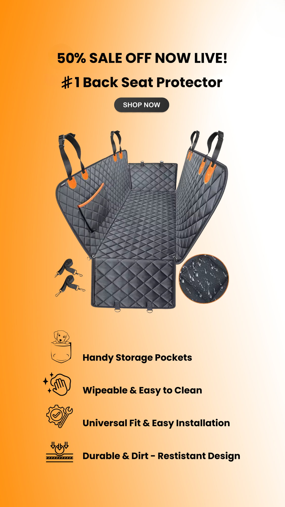 Protect your car and keep your pet comfy on every trip. Our back seat protector installs in just 1 minute, with 100% tear-proof, waterproof material that stands up to mud, scratches, and fur. Easy to clean, built for daily use, and tough enough for big dogs it makes every ride safe, stress-free, and mess-free.